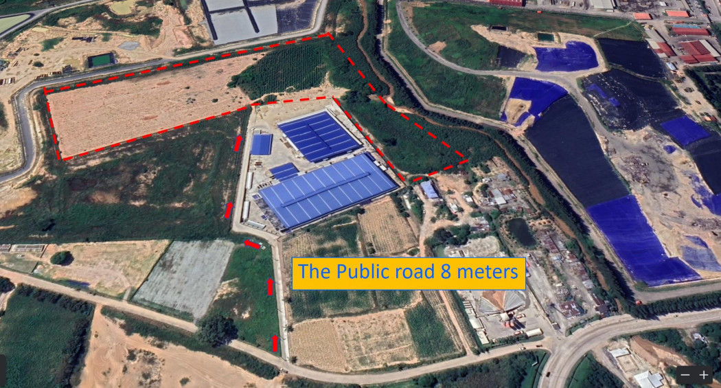 ติดถนนสาธารณะกว้าง 8 เมตร มีไฟฟ้า 3 เฟส เหมาะสร้างโรงงาน โกดัง คลังสินค้า หรือซื้อไว้เก็งกำไร