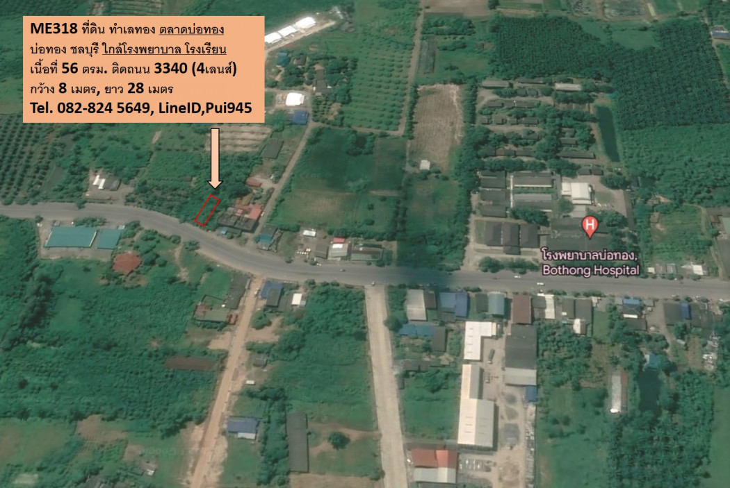 ขาย ที่ดิน ME318 ทำเลค้าขาย ติดถนนสี่เลนส์ ตลาดบ่อทอง ชลบุรี ขนาด 56 ตรว ถูกสุดในย่านนี้ ที่ถมแล้ว สูงกว่าถนน พร้อมสร้าง ซื้อไว้เก็งกำไร