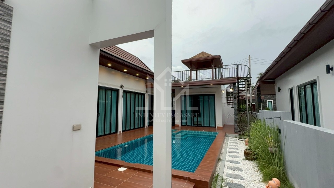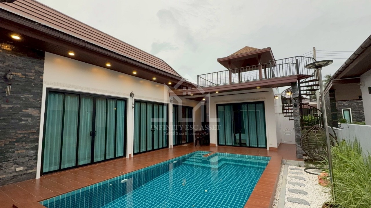 รายละเอียด 80821-1 COCO BEACH MOUNTAIN VIEW สิ่งอำนวยความสะดวก - 3 ห้องนอน 3 ห้องน้ำ - ติดเขาสามร้อยยอด - สระว่ายน้ำ - ห้องนั่งเล่น โต๊ะทานอาหาร - Wi-Fi - มีแอร์ครบทุกห้อง - ห้องครัว -เครื่องใช้ไฟฟ้าครบครัน เฟอร์ครบ สามารถหิ้วกระเป๋าเข้าอยู่ได้เลย - ดาดฟ้า - จอดรถภายในบ้านได้สะดวก สถานที่ท่องเที่ยวใกล้เคียง - หาดสามร้อย 6 นาที - บึงบัว 5 นาที - ถ้ำ พระยานคร 12 นาที - หาด ปากน้ำปรานบุรี - 19 นาที - ห้าง มาร์เก็ตวิลเลจ หัวหิน 37 นาที ราคาขาย 6,500,000 บาท (ต่อรองได้) สนใจสอบถาม โทร 096-6459935 คุณเจนนี่ 092-4586384 คุณปอย ---------------------------------------------------------------- For sale or rent: 80 sq. wah pool villa-style detached house, ready to move in, shady and pleasant atmosphere, Coco Beach Mountain View Villa project. Coco Beach Mountain Villas Phase 1 project. Details 80821 COCO BEACH MOUNTAIN VIEW Amenities - 3 bedrooms, 3 bathrooms - Near Sam Roi Yot Mountain - Swimming pool - Living room, dining table - Wi-Fi - Air conditioning in every room - Kitchen - Fully furnished and equipped with appliances, ready to move in - Rooftop - Convenient parking inside the home Nearby attractions - Sam Roi Yot Beach (6 minutes) - Bueng Bua (5 minutes) - Phraya Nakhon Cave (12 minutes) - Pak Nam Pranburi Beach (19 minutes) - Market Village Hua Hin (37 minutes) Sale Price: 6,500,000 baht (negotiable) For inquiries, please call Jenny at 096-6459935 or Poy at 092-4586384