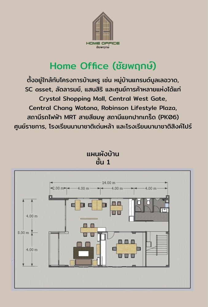 ขาย Home Office (ชัยพฤกษ์) 2 และ 3 ชั้นพร้อมที่ดิน ทำเลดี เดินทางสะดวก ใกล้สถานีรถไฟฟ้า MRT แยกปากเกร็ด