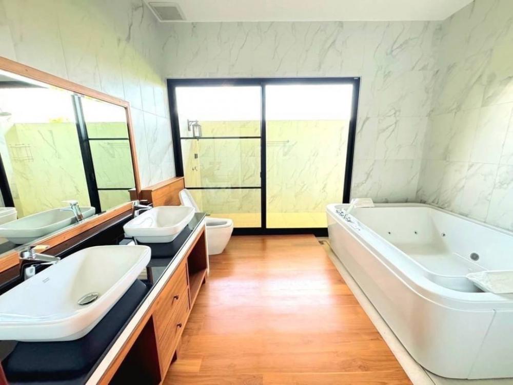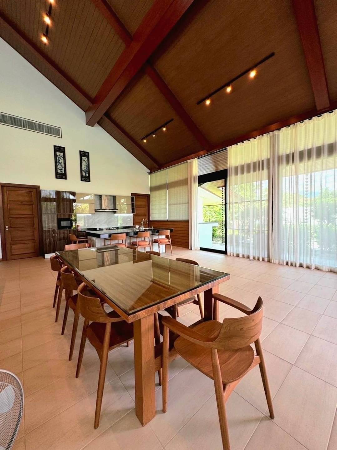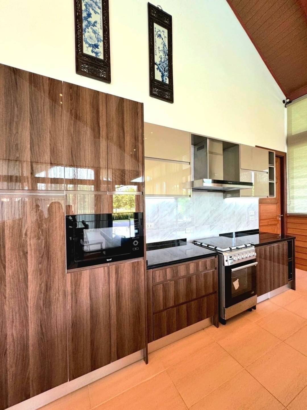 English below ขาย/ ให้เช่าบ้านหรูใกล้สนามกอล์ฟกรีนวัลเล่ย์ อำเภอแม่ริม เชียงใหม่ บ้านพร้อมสระว่ายน้ำส่วนตัว วิวทะลสาบ เหมาะสำหรับคนรักกอล์ฟเพราะตั้งอยู่ติดกับสนามกอล์ฟ กรีนวัลเล่ย์ สวนใหญ่กว้างขวาง ด้านหลังติดทะเลสาบ และมีความเป็นส่วนตัวสูงเงียบสงบ ราคาให้เช่า 150,000 บาท / เดือน สัญญาเช่า 3 ปีขึ้นไป ไม่รับสัตว์เลี้ยง ราคาขาย 50,000,000 บาท รายละเอียด - ที่ดิน เนื้อที่ทั้งหมด 1-3-38 ไร่ (738 ตร.ว.) - พื้นที่ใช้สอยของตัวบ้านกว้างใหญ่ขนาด 800 ตร.ม - มีทั้งหมด 3 ห้องนอน แต่ละห้องมีขนาดใหญ่และมีห้องน้ำในตัวพร้อมอ่างอาบน้ำขนาดใหญ่ ปูด้วยหินอ่อน และระบบน้ำร้อน น้ำเย็นในห้องน้ำทุกห้อง - เครื่องปรับอากาศทุกห้อง - ทั้งหมดมี 4 ห้องน้ำ - เฟอร์นิเจอร์ครบครัน ตกแต่งแบบหรูหรา ด้วยวัสดุอุปกรณ์อย่างดีที่สุด เกรดพรีเมี่ยม และพื้นไม้สักทอง เพดานตกแต่งด้วยไม้ยกสูงทำให้รู้สึกโปร่งโล่งสบาย - ห้องรับแขกขนาดใหญ่ ทุกห้อง เน้นออกแบบโปร่งโล่ง ด้วยเพดานสูงถึง 6 เมตร ประตูไม้สักขนาดใหญ่ และหน้าต่างเปิดรับลมได้รอบบ้าน ห้องรับแขก พร้อมชุดโซฟา ทีวีจอแบน - ห้องครัวฝรั่ง แบบโอเพ่นเปิดโล่ง ขนาดใหญ่ พร้อมเตาอบ ที่ดูดควันไมโครเวฟ ตู้เย็นขนาดใหญ่ เคาน์เตอร์ปูด้วยหินแกรนิตแบบสวยงาม และแข็งแรงทนทาน ห้องรับประทานอาหารขนาดใหญ่ พร้อมโต๊ะรับประทานอาหาร โต๊ะไม้สักขนาดใหญ่ สำหรับ 8 ที่นั่ง พร้อมเก้าอี้ - ระเบียงขนาดใหญ่ จิบกาแฟยามเช้าริมสระน้ำ - สระว่ายน้ำขนาดใหญ่ ขนาด 5×12 เมตร ระบบเกลือ - บ้านแม่บ้านสร้างแยกหลังออกมาด้านหน้าบ้าน มี 3 ห้องนอน พร้อมห้องน้ำในตัวและครัวไทย - ที่จอดรถได้ 2 คัน - ห้องชักรีด มีเครื่องชักผ้าและเครื่องอบผ้า ห้องครัวไทยแยกออกมา และมีห้องใต้ดิน เดินทางสะดวกสบาย จากตัวเมืองเชียงใหม่ 23 นาที (11 กม.) สถานที่ใกล้เคียง: จากองค์การบริหารส่วนตำบลแม่สา 3 นาที (1.6 กม.) จากวัดขอนตาล(ลัฏฐิวัน) 5 นาที (2.4 กม.) จากโรงพยาบาลดารารัศมี 4 นาที (2.2 กม.) จากพระตำหนักดาราภิรมย์ 5 นาที (2.6 กม.) จากแม็คโครแม่ริม 5 นาที (2.7 กม.) จากโรงพยาบาลสันทราย 8 นาที (5 กม.) **พิกัด:ตำบลแม่สา อำเภอแม่ริม เชียงใหม่ For Rent / Sale Luxury private pool villa, located in Mae sa, Mae Rim District, Chiang Mai. For Rent price 150,000 baht / month. ( Long term 3 years contract. Pets are not allowed) For Sale price THB 50,000,000 A private swimming pool and lake view, this villa for golf lovers, lives nearly the golf course in Green Valley village. Nice and quiet neighborhood. Its convenient away from the city. Old Chiang Mai city is about 23 minutes or 11 kilometers away. Suitable for those people who want to live in private peace and quiet from the city, near by nature, safety and convenience. Gate remote control. - Land size, quite a large plot of 1 rai 338 Sq wa or 2,952 square meters - The living area of the house is large size 800 square meters. - There are 3 bedrooms, each room is large and has an en-suite bathroom with a large bathtub. Covered with marble, hot-cold water systems in every bathroom. - Air-conditioning in the whole house. - Total has 4 bathrooms - Fully furnished. - Decorated in a luxurious style with the best materials Premium grade - large living room, with a tall ceiling of up to 6 meters, large teak wooden ceiling and wooden floor an