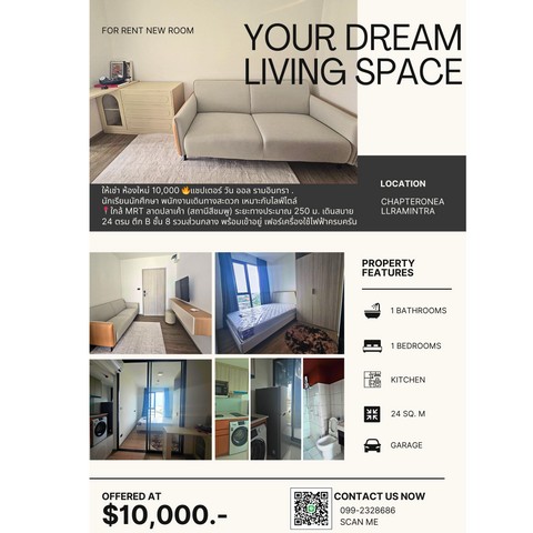 #คอนโดเช่ารามอินทรา Chapter One All รามอินทรา สถานีลาดปลาเค้า 250 ม. เช่า 10,000 บาท/เดือน (พร้อมจองต่อรองราคาได้ค่ะ) ขออนุญาตให้สิทธิ์ท่านที่โอนจองก่อนค่ะ ห้อง 1 Bed ขนาด 24.02 ตร.ม. อาคาร B * ชั้น 8 บ้านเลขที่ 385,386 ห้องแต่งครบพร้อมเข้าอยู่ เฟอร์นิเจอร์ : ชุดครัว โซฟา ชั้นวางทีวี ชุดโต๊ะทานอาหาร ตู้เสื้อผ้า เตียง ฟูกที่นอน ผ้าม่าน ▪️เครื่องใช้ไฟฟ้า : เตาไฟฟ้า เครื่องดูดควัน เครื่องทำน้ำอุ่น ตู้เย็น ทีวี ไมโครเวฟ เครื่องซักอบผ้า …………………………………………… จุดเด่นโครงการ ▪️คอนโดใหม่ ย่านรามอินทราตอนต้น ติดถนนใหญ่ ใกล้รถไฟฟ้า ▪️ส่วนกลางขนาดใหญ่ จัดเต็ม 8 ชั้น ▪️ใกล้ทางด่วนศรีรัช, ห้างสรรพสินค้า, สถานศึกษาชั้นนำและโรงพยาบาล เช่น The Jas รามอินทรา, Big C รามอินทรา, ม.ศรีปทุม ม.เกษตรศาสตร์ บางเขน และ รพ.จุฬาภรณ์ เรามีทีมงานพร้อมให้คำปรึกษาฟรี สนใจนัดชมโครงการได้ค่ะ โทร : 099-2328686 บุญ (AG) LINE : meefong78933 #คอนโดเช่ารามอินทรา #รถไฟฟ้าสายสีชมพู #คอนโดเช่าใกล้รถไฟฟ้าสายสีชมพู #คอนโดเช่าลาดปลาเค้า #ลาดปลาเค้า #รามอินทรา #สถานีลาดปลาเค้า #คอนโดlowrise #chapterรามอินทรา #แชปเตอร์วันออลรามอินทรา #chapteroneallramintra #คอนโดเช่าแชปเตอร์รามอินทรา #คอนโดรามอินทรา #คอนโดแจ้งวัฒนะ #คอนโดใกล้รถไฟฟ้าสายสีชมพู #คอนโดใกล้รถไฟฟ้า #คอนโดใกล้MRT #MRTลาดปลาเค้า #ChapterOneAllRamintra #แชปเตอร์วันออลรามอินทรา #คอนโดใกล้เซ็นทรัลรามอินทรา #ให้เช่าคอนโดรามอินทรา #ให้เช่าคอนโดราคาถูก #คอนโดใหม่ #คอนโดกรุงเทพ #คอนโดใกล้เกษตร #คอนโดใกล้มหาลัย #คอนโดใกล้มอศรีปทุม #คอนโดใกล้รถไฟฟ้า #ให้เช่าคอนโดราคาถูก #คอนโดใกล้มอเกริก #คอนโดใหม่ #CondoRamintra #CondoNearBTS #CondoNearMRT #MRTLatPlaKhao #ChapterOneAllRamintra #ChapterOneAllRamintra #CondoNearCentralRamintra #ReadyToMoveInRoomForRent