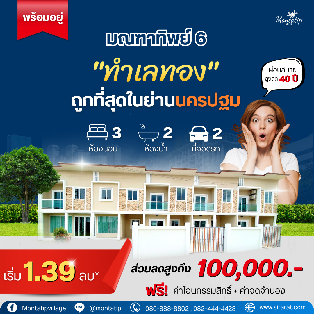 ทำเลทอง ถูกที่สุดในย่านนครปฐม เริ่ม 1.39 ล้านบาท