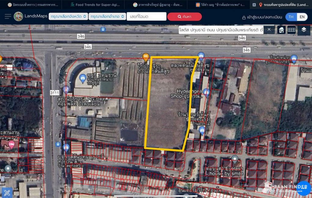 ที่ดินเปล่าให้เช่า 6 ไร่เศษ ติดถนน 346 (รังสิต-ปทุมธานี) หน้ากว้างติดถนน 70 เมตร ใกล้แยกสันติสุข เมืองปทุมธานี ใกล้แม็คโคร แยกสันติสุข