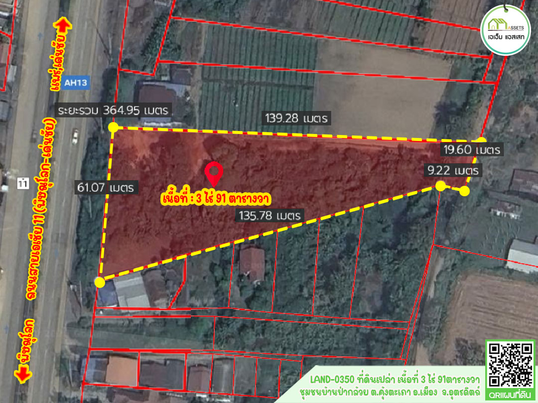 ที่ดินเปล่า ทำเลทอง ติดถนนสายเอเชีย11 (พิษณุโลก-เด่นชัย) ใกล้โรงพยาบาลพิษณุเวชอุตรดิตถ์