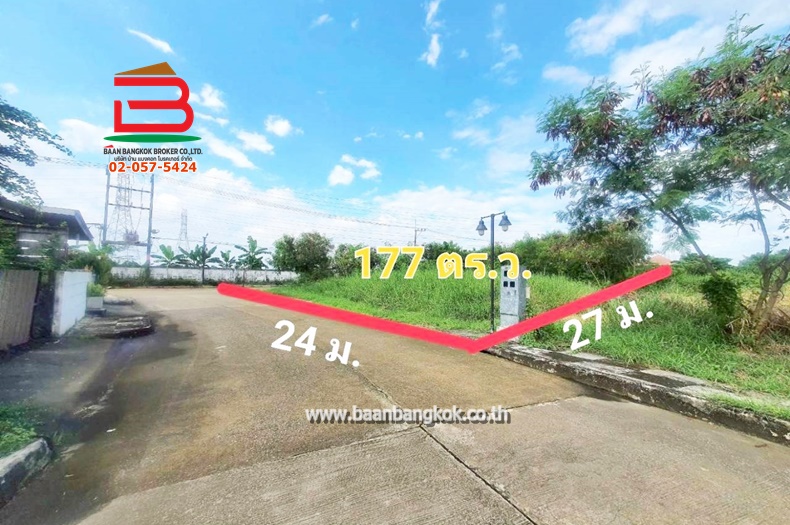 ที่ดินเปล่า แปลงมุม หมู่บ้าน เลคการ์เด้น ลากูน่า เนื้อที่ 177.2 ตรว. ถนนหลวงแพ่ง ต.คลองหลวงแพ่ง อ.เมือง จ.ฉะเชิงเทรา