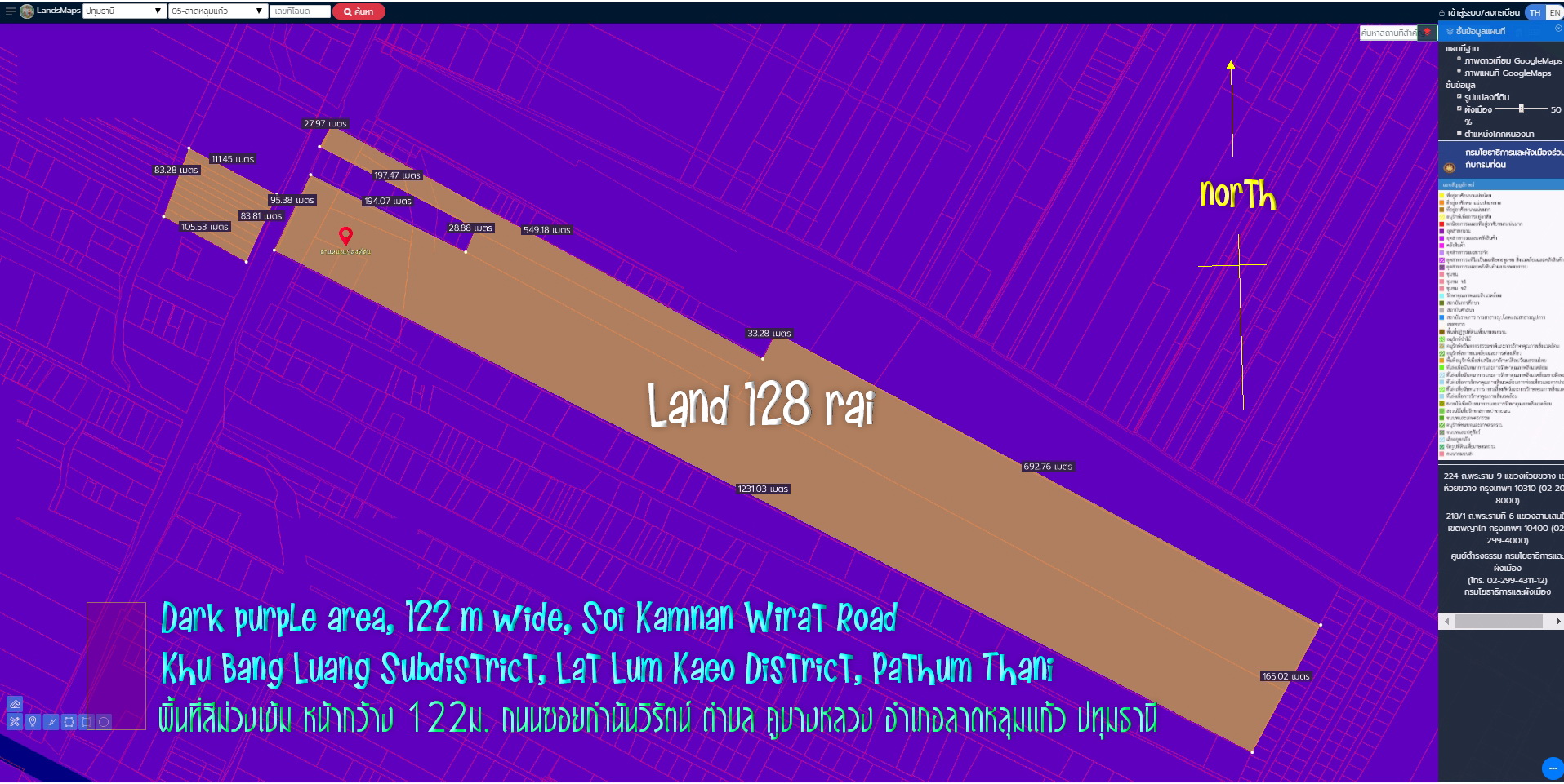 พื้นที่สีม่วงเข้ม หน้ากว้าง 122ม. ถนนซอยกำนันวิรัตน์
