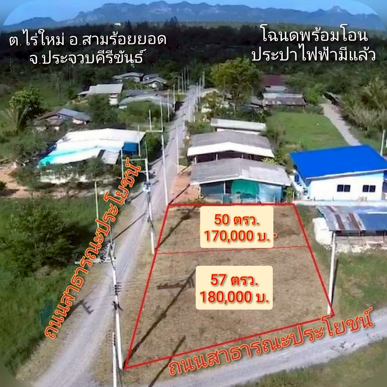 ลดราคาพิเศษ!! ขายที่ดิน 50 ตรว. ราคา 170,000 บาท บ้านหนองจิกพัฒนา ต.ไร่ใหม่ อ.สามร้อยยอด จ.ประจวบคีรีขันธ์