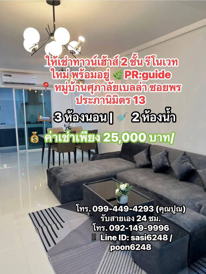 #ให้เช่าทาวน์เฮ้าส์ 2 ชั้น รีโนเวทใหม่ พร้อมอยู่ PR:guide หมู่บ้านศุภาลัยเบลล่า ซอยพรประภานิมิตร 13 ทำเลดี ใกล้ตลาด ใกล้มอเตอร์เวย์ เดินทางสะดวก 3 ห้องนอน 2 ห้องน้ำ รีโนเวทใหม่ทั้งหลัง เฟอร์นิเจอร์ + เครื่องใช้ไฟฟ้า ใหม่ทุกชิ้น รปภ.ดูแลตลอด 24 ชม. ไม่รับสัตว์เลี้ยง ค่าเช่าเพียง 25,000 บาท/เดือน สัญญาขั้นต่ำ 1 ปี มัดจำ 2 เดือน (50,000 บาท) + ล่วงหน้า 1 เดือน (25,000 บาท) รวมจ่ายก่อนเข้าอยู่: 75,000 บาท รายการของแถม + สิ่งอำนวยความสะดวกครบครัน: แอร์ 3 เครื่อง เตียง + ตู้เสื้อผ้า + โต๊ะเครื่องแป้ง 2 ชุด ชุดโซฟา ทีวี 55 นิ้ว + ชั้นวาง ชุดโต๊ะอาหาร ตู้เย็น 2 ประตูขนาดใหญ่ เครื่องซักผ้า 15 กก. เครื่องทำน้ำอุ่น เตาแก๊สฝัง + เครื่องดูดควัน + แก๊สเต็มถัง ไมโครเวฟ แท้งค์น้ำ + ปั๊มน้ำ ฟรี! ค่าล้างแอร์ทุก 6 เดือน ฟรี! ค่าส่วนกลาง For more information, please contact ======= สนใจติดต่อ&ข้อมูลเพิ่มเติม โทรสายตรง รับสายเอง24ชม. สอบถามข้อมูลเพิ่มเติม / นัดดูห้อง โทร. 099-449-4293 (คุณปูณ) รับสายเอง 24 ชม. โทร. 092-149-9996 Line ID: sasi6248 / poon6248 #จบเคสง่าย #ปิดเคสไว #บริการจริงใจ #ใส่ใจทุกเคส #EasyRichProperty By คุณปูณ #รับฝากเช่า #ฝากขาย #บ้าน #คอนโด #ที่ดิน #บ้านให้เช่าสุภาลัยเบลล่า #ซอยประภานิมิตร #บ้านรีโนเวท #บ้านพลูวิลล่า #อสังหาริมทรัพย์ #พัทยา #แหลมฉบัง #ศรีราชา #ชลบุรี #กทม ยินดีให้บริการ