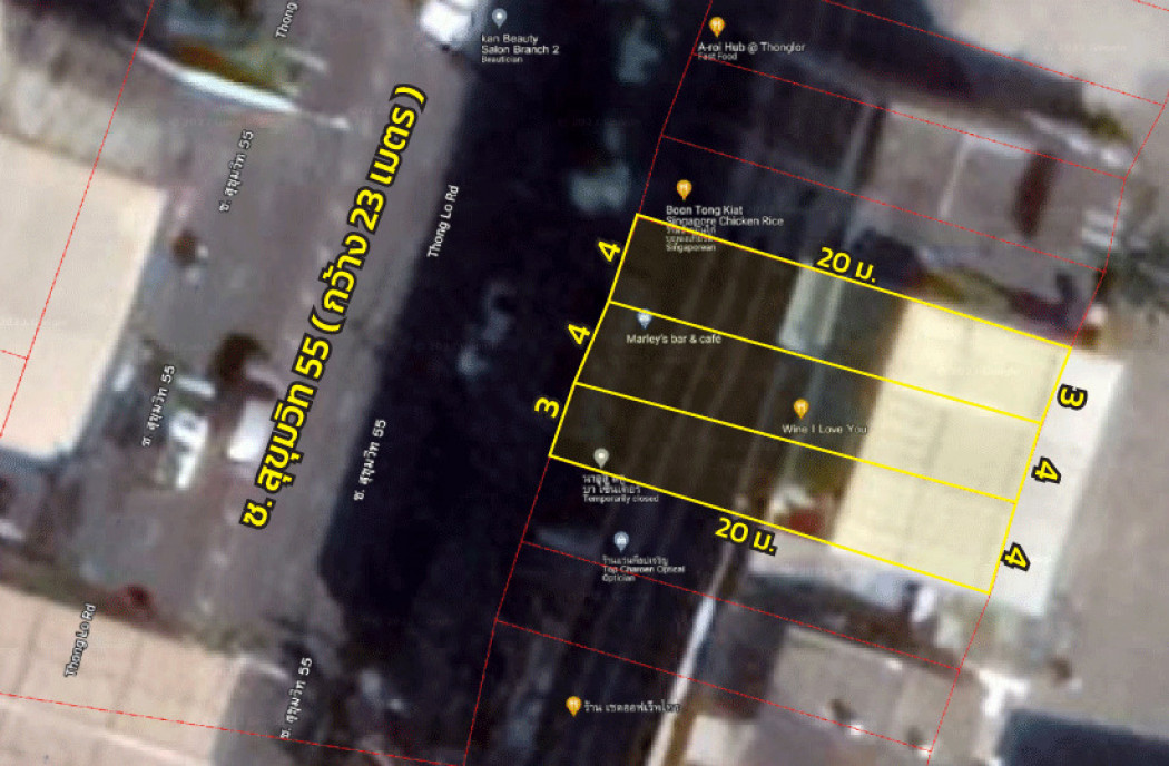 ให้เช่าที่ดินและอาคารพาณิชย์ ถ.ทองหล่อ (ซ.สุขุมวิท 55) 19.7 ตร.ว. - 39.6 ตร.ว.