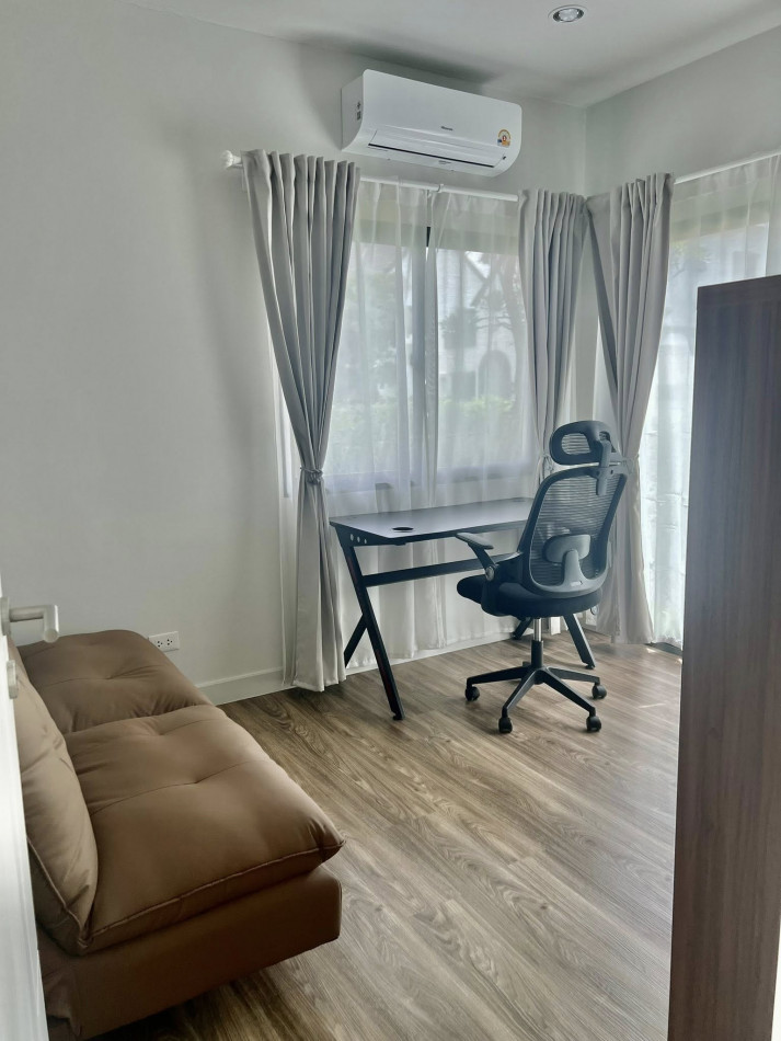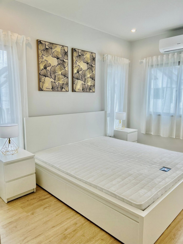 ให้เช่าบ้านเดี่ยวใหม่เอี่ยม โครงการสราญสิริ บางนา บรรยากาศร่มรื่น เงียบสงบ วิวทะเลสาบ ใกล้ ABAC – Mega Bangna – สุวรรณภูมิ บ้านเดี่ยวแบบ Daisy อายุบ้านเพียง 2 ปีเท่านั้น ตกแต่งครบ พร้อมอยู่ เหมาะสำหรับคนทำงานที่บ้าน ต้องการความสงบและเดินทางสะดวก ราคาเช่า 55,000 บาท/เดือน (มัดจำ 2 เดือน + ล่วงหน้า 1 เดือน) ข้อมูลบ้าน: พื้นที่ใช้สอย 165 ตร.ม. ขนาดที่ดิน 56 ตร.วา 2 ห้องนอน 3 ห้องน้ำ 1 ห้องทำงาน 1 ห้องนั่งเล่น 2 ที่จอดรถ แอร์ 4 ตัว (ห้องทำงาน, ห้องนั่งเล่น, ห้องนอนทั้ง 2 ห้อง) เฟอร์นิเจอร์และเครื่องใช้ไฟฟ้าครบ: โต๊ะกินข้าว โซฟาหน้าทีวี, โซฟาชั้น 2, โซฟาห้องทำงาน ตู้วางทีวี, โต๊ะทำงาน + เก้าอี้, ชั้นวางหนังสือ ชั้นวางรองเท้า, เตียงนอน 2 เตียง, โต๊ะข้างเตียง 2 ตัว ตู้เสื้อผ้า 2 ตู้, โต๊ะเครื่องแป้ง, ชุดเครื่องนอน 2 ชุด ตู้เก็บของห้องนอนมาสเตอร์ 2 ใบ ตู้เย็น, ทีวี, ไมโครเวฟ, เครื่องซักผ้า, เตาไฟฟ้า เครื่องทำน้ำอุ่น 2 เครื่อง, โคมไฟข้างเตียง 2 โคม พัดลม 2 ตัว จุดเด่นทำเล: หน้าบ้านใกล้วิวทะเลสาบของโครงการ เดินทางสะดวกมาก ใกล้ทางด่วนและถนนสายหลัก ใช้เวลาเดินทางเพียง 30 นาทีถึงอ่อนนุช ถนนสุขุมวิท ใกล้ ม.เอแบค บางนา, เมกาบางนา, เซ็นทรัลบางนา, Market Village ใกล้สนามบินสุวรรณภูมิ, โรงเรียนนานาชาติ, โรงพยาบาลชั้นนำหลายแห่ง เหมาะสำหรับ: ครอบครัว คนทำงานที่บ้าน ผู้ที่ต้องการความเงียบสงบ เดินทางสะดวก พร้อมสิ่งอำนวยความสะดวกครบ สนใจติดต่อ: แคปรูปภาพบ้านแล้วส่งมาที่ Line@ เพื่อสอบถามเพิ่มเติมหรือนัดหมายเข้าชมได้ครับ Line ID: @bird888 (ใส่ @ ด้วยครับ) Add Line: https://lin.ee/7OVtkqn WeChat: Birdproperty168 WhatApp: 085-818-5358 โทรศัพท์: 085-818-5358 เบิร์ด