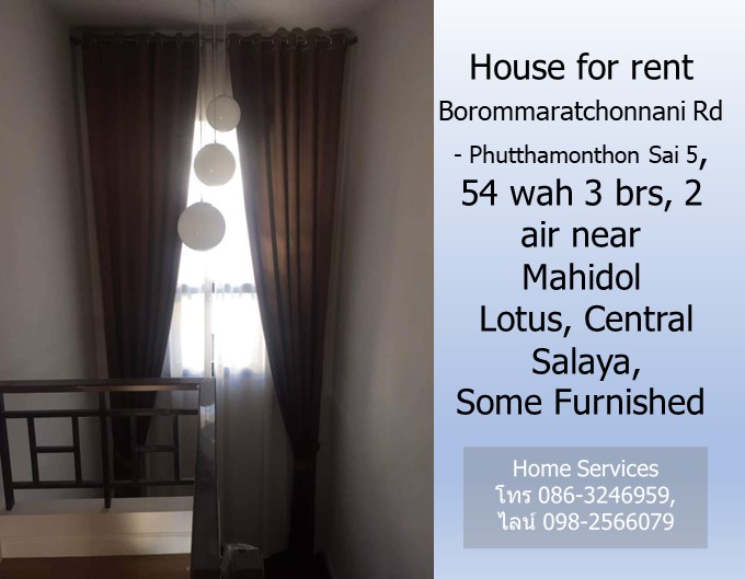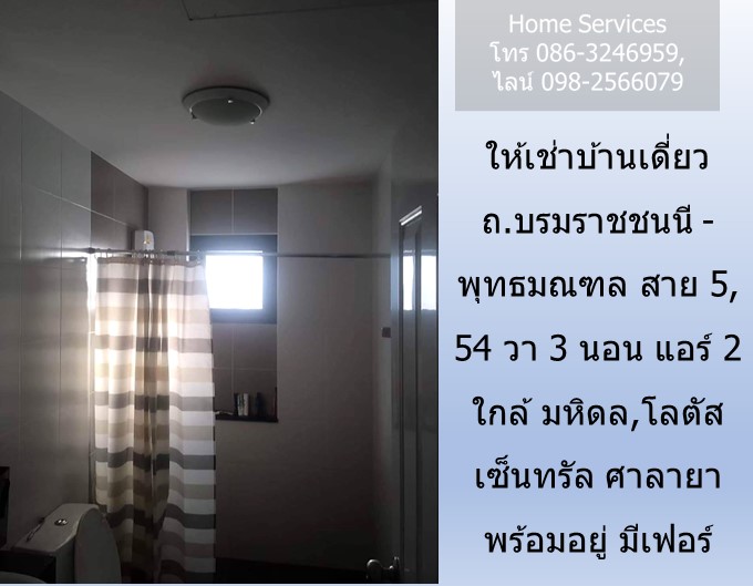 ให้เช่าบ้านเดี่ยว 2 ชั้น ถ.บรมราชชนนี-พุทธมณฑล สาย 5, 54 วา 3 นอน แอร์ 2 ใกล้ มหิดล,โลตัส เซ็นทรัล ศาลายา พร้อมอยู่ มีเฟอร์