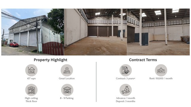 -โกดัง437ตร.ม.เหมาะสำหรับยิมฟิตเนสโชว์รูมสินค้าร้านอาหารขนาดใหญ่ย่านแจ้งวัฒนะหลักสี่