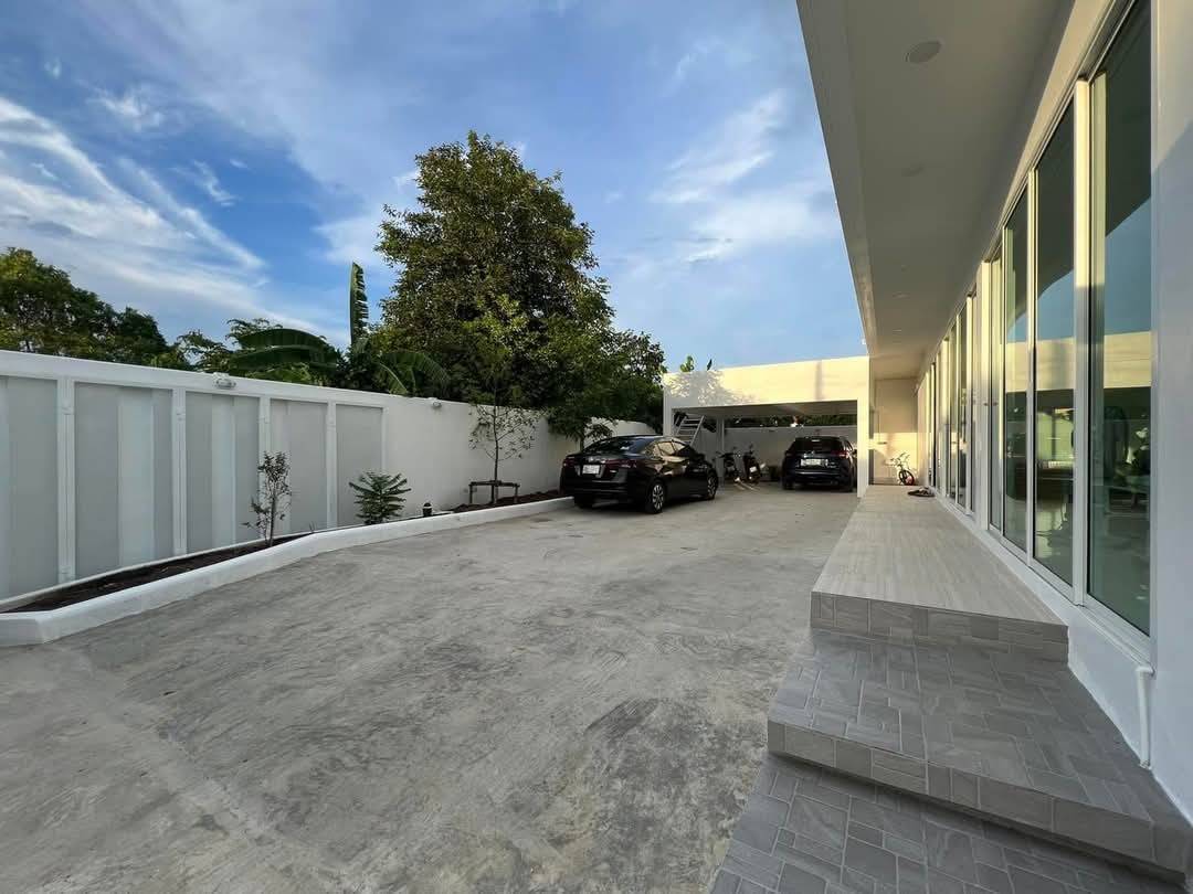 ให้เช่าบ้านโมเดิร์นมินิมอลสีขาวใกล้สุวรรณภูมิ ค่าเช่า 120,000 บาทต่อเดือน สัญญาขั้นต่ำ 1 ปี ประกัน 2 เดือนล่วงหน้า 1 เดือน เนื้อที่ 80 ตรว.พื้นที่ใช้สอย 250 ตรม. 5 ห้องนอน 4 ห้องน้ำ แอร์ 6 เครื่อง 6 ที่จอดรถ บ้านสีขาว สไตล์ Modern 2 ชั้น บรรยากาศเงียบสงบ โปร่ง โล่ง สบาย พื้นที่ปลูกต้นไม้รอบบ้านเหมาะสำหรับพักอาศัย หรือ Airbnb มาพร้อมกับเครื่องใช้ไฟฟ้าครบครัน สถานที่ใกล้เคียง