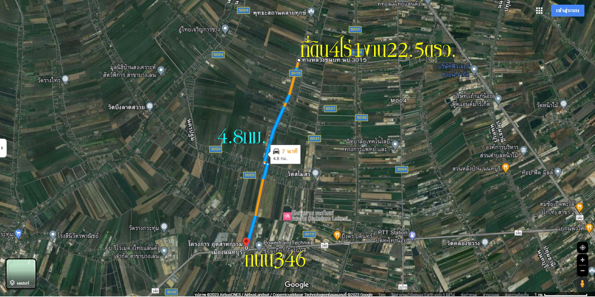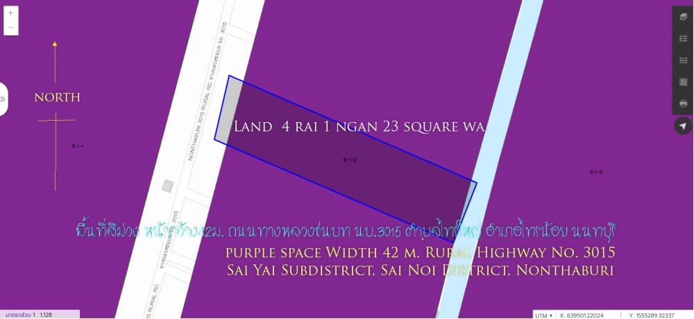 ✅ขายที่ดิน 4ไร่1งาน23ตารางวา พื้นที่สีม่วง หน้ากว้าง42ม. ถนนทางหลวงชนบท นบ.3015 ตำบลไทรใหญ่ อำเภอไทรน้อย นนทบุรี