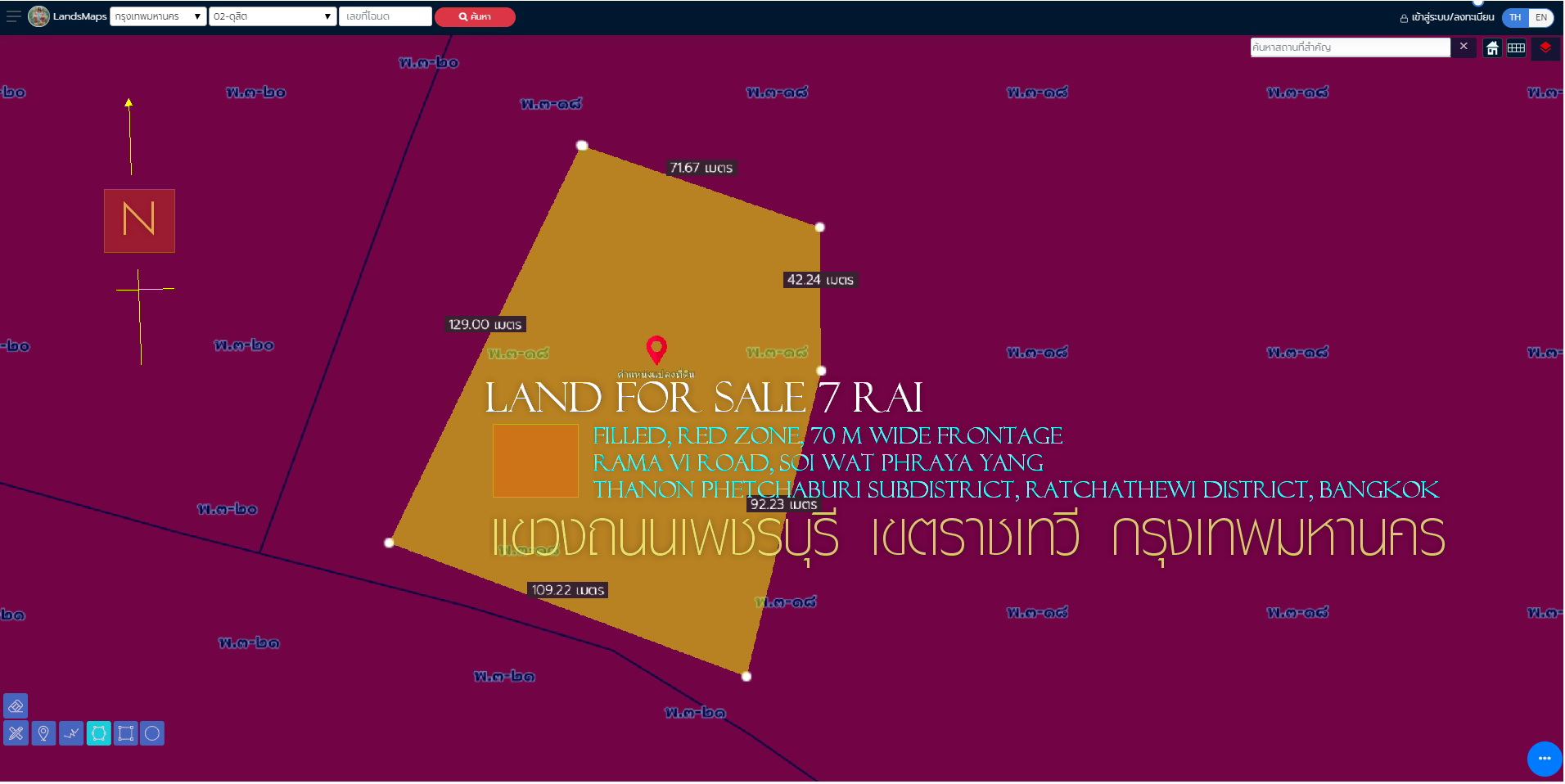 ✅ขายที่ดิน 7ไร่ ถมแล้ว พื้นที่สีแดง หน้ากว้าง 70ม. ถนนพระราม 6 วัดพระยายัง แขวงถนนเพชรบุรี เขตราชเทวี กรุงเทพมหานคร