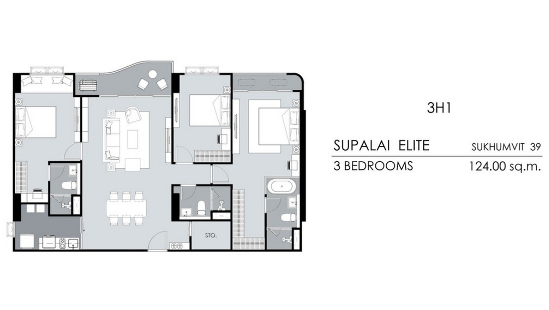 - เป็นห้อง 3-Bedroom 3-Bathroom แบบ 3H1 ขนาด 124 ตารางเมตร หลายคนบอกว่าห้องนี้ Layout ดีที่สุดในโครงการละ เป็น 3-Bedroom 3-Bathroom แค่ไม่กี่ห้องที่มีระเบียง