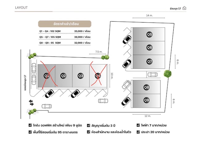 BST957 ให้เช่าโกดังพร้อมออฟฟิศ สุขุมวิท 93 (บางจาก–อ่อนนุช) สนใจติดต่อ Agent คุณบัว โทร: 093-646-4597 LINE ID: Bua093 Location: ซอยสุขุมวิท 93 ใกล้ BTS บางจาก & BTS อ่อนนุช โกดังพร้อมออฟฟิศ เหมาะสำหรับทำสำนักงาน จดทะเบียนบริษัท หรือเก็บสินค้า รายละเอียดโกดัง: พื้นที่ใช้สอย: 108 ตร.ม. (6 × 14 ม.) ห้องน้ำในตัว + พื้นที่ออฟฟิศ ว่าง 2 ยูนิต (ติดกัน) ค่าเช่า: ห้องกลาง ➝ 36,000 บาท/เดือน ห้องมุม ➝ 38,000 บาท/เดือน จดทะเบียนบริษัทได้ ค่าไฟ 7 บาท/ยูนิต | ค่าน้ำ 20 บาท/หน่วย สัญญาเช่าขั้นต่ำ 3 ปี เงื่อนไข: มัดจำ 2 เดือน + ล่วงหน้า 1 เดือน เหมาะสำหรับ: สำนักงานขนาดเล็ก | สต็อกสินค้า | ศูนย์กระจายสินค้าในเมือง BST957 Warehouse with Office for Rent @ Sukhumvit 93 (Bangchak – Onnut) สนใจติดต่อ Agent คุณบัว โทร: 093-646-4597 LINE ID: Bua093 Location: Sukhumvit 93 Alley, near BTS Bangchak & BTS Onnut Warehouse + Office for rent, ideal for company registration, office use, or storage. Property Details: Usable area: 108 sqm (6 × 14 m) In-room bathroom + office space 2 available units (side by side) Rental Price: Middle unit ➝ THB 36,000/month Corner unit ➝ THB 38,000/month Company registration allowed Electricity: THB 7/unit | Water: THB 20/unit Minimum lease: 3 years Terms: 2 months deposit + 1 month advance Suitable for: Small office | Storage | Urban distribution hub #โกดังสุขุมวิท #โกดังให้เช่าอ่อนนุช #โกดังให้เช่าพระโขนง #โกดังพร้อมออฟฟิศ #เช่าโกดัง English: #WarehouseForRent #BangkokWarehouse #SukhumvitWarehouse #OfficeForRentBangkok #OnnutBangchak สนใจติดต่อ Agent คุณบัว โทร: 093-646-4597 LINE ID: Bua093 Facebook: BH Property PL. Real Estate Broker – ตัวแทนขาย-เช่าอสังหาริมทรัพย์ทุกประเภท BST957