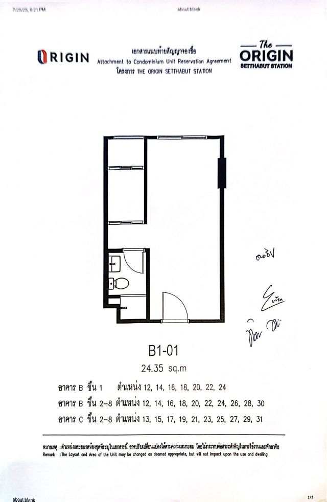 CM04331 ขายดาวน์ ดิ ออริจิ้น เศรษฐบุตร สเตชั่น The Origin Setthabut Station คอนโดมิเนียม ถนนสุวินทวงศ์ แขวงมีนบุรี เขตมีนบุรี กรุงเทพมหานคร 10510 เนื้อที่ 24.35 ตร.ม. 1 ห้องนอน 1 ห้องน้ำ ชั้น ตึก C ขายด่วน ราคาดีมาก ขายดาวน์ 90,000 บาท ลงทุนก็ได้ อยู่เองก็ดี ขายดาวน์ราคาไม่แพง ต่อรองได้ ปัจจุบันราคา 1,590,000 บาท คอนโดใกล้รถไฟฟ้า MRT เศรษฐบุตร เดินทางเพียง 2 นาที 800 เมตร -ติดบิ๊กซี ซูเปอร์เซ็นเตอร์ สุวินทวงศ์ เพียง 180 เมตร -โรงพยาบาลนวมินทร์ 9 เพียง 800 เมตร -ตลาดปากซอย(หทัยราษฎร์) 800 เมตร -Mingle Hill Minburi 2.8 กิโลเมตร -Chatuchak Weekend Market 3.1 กิโลเมตร เดินทางเข้าเมืองสะดวก ไลฟ์สไตล์ครบครัน ***** พร้อมรับส่วนลดพิเศษ Special ณ วันโอนกรรมสิทธิ์ 100,000 บาท ***** *รายการของแถมเพิ่มเติม* 1.Digital door lock 2. เครื่องปรับอากาศ 9000 BTU 2 รายการ 3. ชั้นวางทีวี 1 รายการ 4. ชุดครัว 1 รายการ 5. ตู้ครอบตู้เย็น 1 รายการ 6. ตู้รองเท้า 1 รายการ 7. ตู้เสื้อผ้า 8. เตียงนอน 5 ฟุต 1 รายการ *สิ่งอำนวยความสะดวก* -คลับเฮาส์ Lobby Mail Box Fitness Co-Working Space -Swimming Pool Pet Room Studio Room Meeting Room -RooftopCCTV Key Card เจ้าหน้าที่รักษาความปลอดภัยตลอด 24 ชม. ขายดาวน์ 90,000 บาท ราคาหน้าสัญญา 1,490,000 บาท มีส่วนลดวันโอนกรรมสิทธิ์ 100,000 บาท เหลือสุทธิ 1,390,000 บาท *สนใจติดต่อได้ที่ 086-802-5609 คุณป๊อบ line 0868025609* *บริการรับฝากขาย เช่า บ้าน ที่ดิน คอนโด และอสังหาริมทรัพย์ทุกประเภท ฟรีค่าคอมมิชชั่น กรณีเจ้าของขายเอง