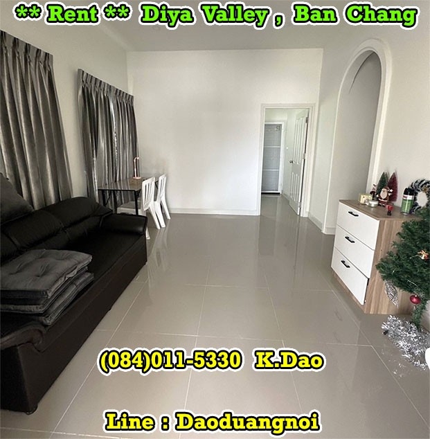 *** Corner House for Rent *** #Diya Valley, Ban Chang +++ Phase II +++ (New Phase) Tuscany Style Located on Sukhumvit Road. Near Robinson Department Store Location : https://g.page/DiyaValleyBanchang?share 1-Storey House Land Area 57 Sqr.wah House Area 102 Sqr.m. 2 Bedrooms 2 Bathrooms 1 Kitchen 1 Living Room 2 Parking +++ Rental Fee 15,000 Baht +++ Facility - Clubhouse - Swimming Pool - Gym - European Community Park - Double Security Gates Contact for renting with Dao. Tel. : (084)011-5330 Line ID : Daoduangnoi WhatsApp : +6684 011 5330 https://www.facebook.com/ThePastelProperty