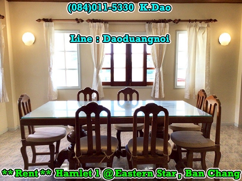 *** House for Rent *** Ban Chang Hamlet 1, Eastern Star Golf Course Great location, the village is located on Eastern Stars main street. Across the street is "The Sphere”, which is the new renovation Sports Club of Eastern Star. Location : https://goo.gl/maps/nkycEX4ZiKtn8MGi6 2-Storey House Land Area 140.3 Sqr.wah 4 Bedrooms 4 Bathrooms 1 multi-Purpose Room 1 Living Room 1 Reception Hall 1 Dining Area 1 European Kitchen 2 Storage Rooms 1 Closet Room 2 Balconies 1 Terrace 1 Laundry Area with Canopy Roof 2 Parking Fully Furnished Big Garden & Green Lawn +++ Rental Fee 35,000 Baht +++ Hamlet 1 has a big community park and playground in the village. 24-Hour Security Guard, residents have the keycards for opening the village’s gate. Near Eastern Star Golf Club, Golf Course & Driving Range, and Tennis Court of Eastern Star. Expat Community Contact for renting with Dao. Tel. : (084)011-5330 Line ID : Daoduangnoi WhatsApp : +6684 011 5330 https://www.facebook.com/ThePastelProperty