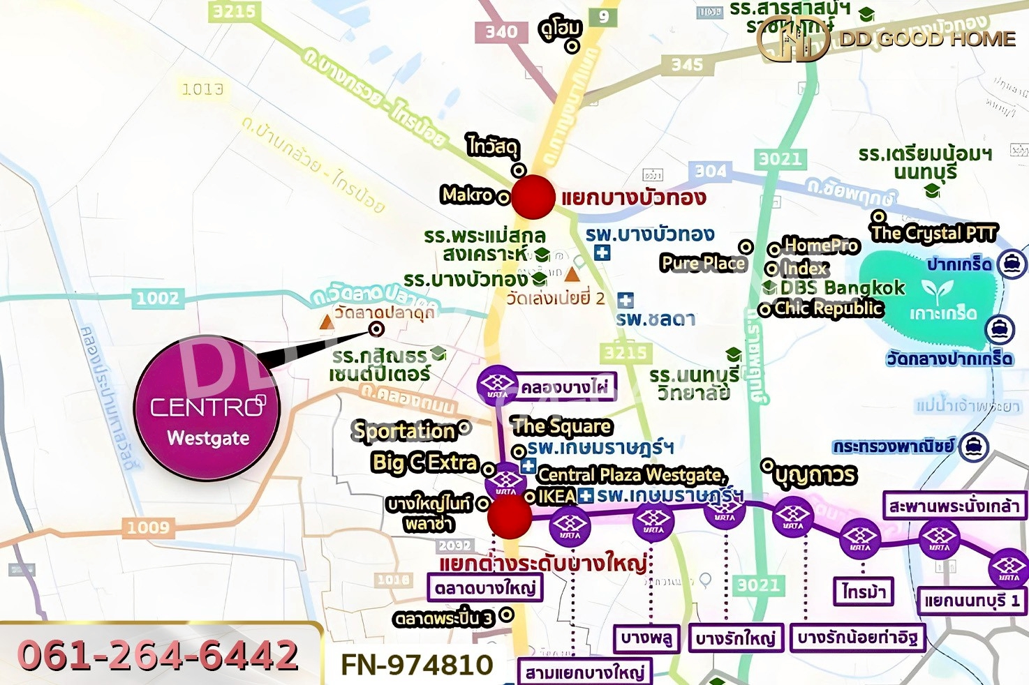 FN-974810 บ้านเดี่ยว เซนโทร เวสต์เกต นนทบุรี ใกล้รถไฟฟ้าสีม่วงสถานีคลองบางไผ่