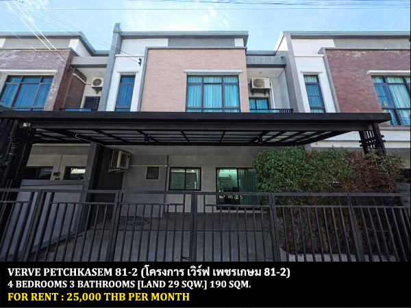 [ให้เช่า] FOR RENT VERVE PETCHKASEM 81-2 / 4 bedrooms 3 bathrooms / 29 Sqw. 190 Sqm. **25,000** CLOSE TO THE MALL BANGKAE
