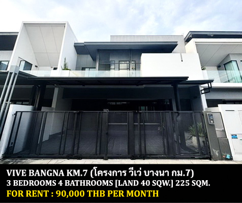 [ให้เช่า] FOR RENT VIVE BANGNA KM.7 / 3 bedrooms 4 bathrooms / 40 Sqw. 225 Sqm. **90,000** JUST 5 MINUTES FROM MEGA BANGNA